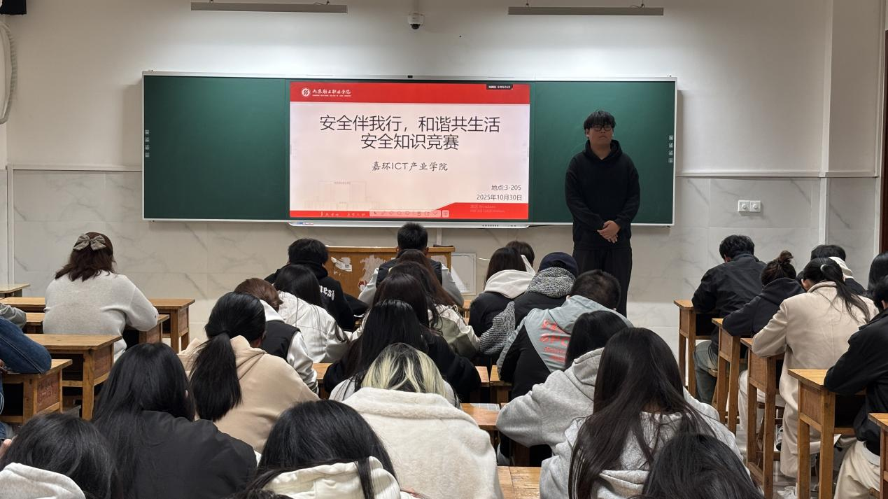 为切实提升全体学生的安全意识与自我保护能力,营造安全、和谐的公寓生活环境,丰富课余文化生活,一站式社区嘉环ICT产业学院励行书院于2025年10月30日在TW3205成功开展“安全伴我行,和谐共生活”安全知识竞赛活动。
