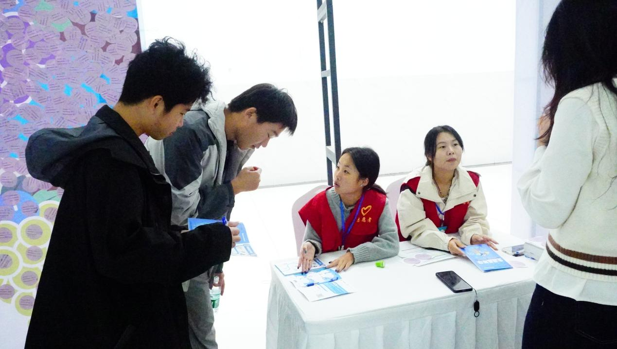 活动筹备阶段,志愿者们协助搭建模拟职场场景,提前将职业规划手册分发给每位同学。活动启动后,志愿者化身“引导员”,在签到处,引导同学们有序排队,并提前告知流程与注意事项;在职业技能体验区里,志愿者主动演示操作,帮助同学们更快掌握活动体验方法;当有同学对职业方向感到迷茫时,志愿者耐心倾听需求,结合活动手册为其推荐适配的体验项目,以实际行动保障活动的顺利开展。