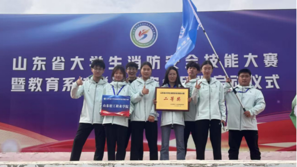 我校高度重视此次赛事,赛前通过“院系选拔+集中集训”模式遴选,组建由嘉环ICT产业学院5名、商务贸易系2名、机电工程系1名学生组成的8人队伍参赛,围绕“火场零距离”“打靶先锋”“迷宫逃生”“穿越火线”“齐力断金”“勇者同行”“烈焰攻坚”七大竞赛科目开展了为期一个月的高强度专项训练。最终从众多参赛队伍中脱颖而出,获得山东省大学生消防安全技能大赛二等奖。