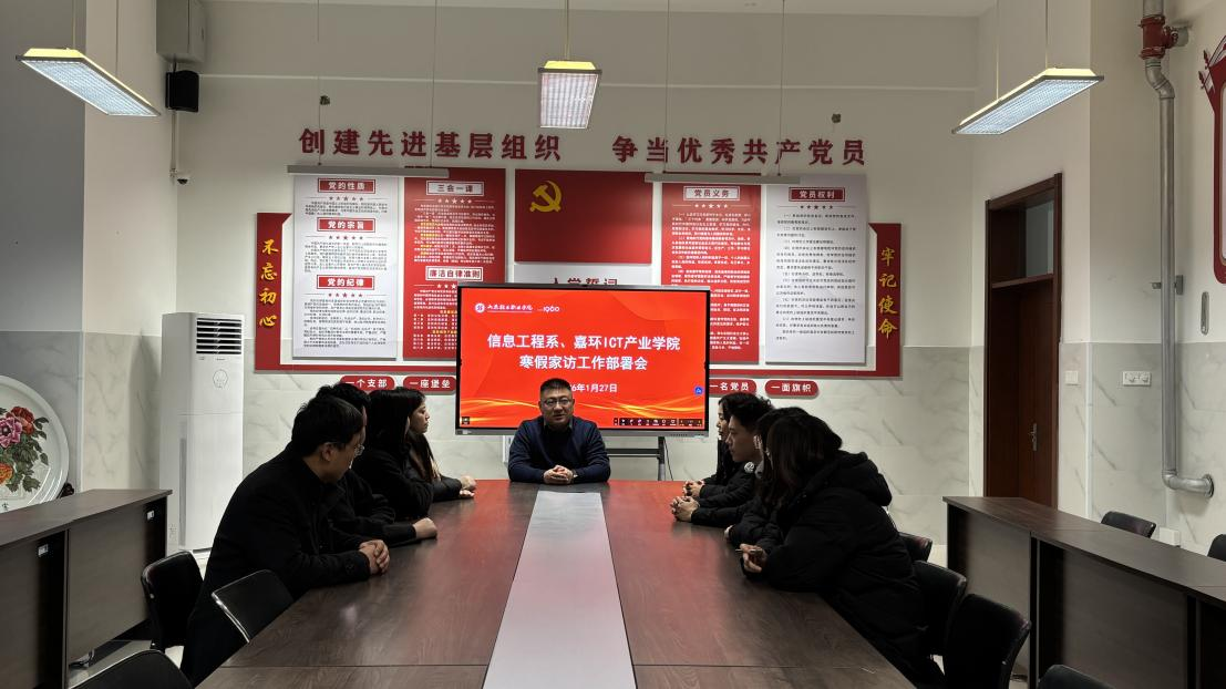 岁末寒冬,情暖意浓。为切实加强嘉环ICT产业学院育人实效,密切家校联系,凝聚育人合力。1月28日至30日,嘉环ICT产业学院精心组织并启动寒假家访工作。家访行动前,系党总支书记房屹主持召开专题工作部署会议,强调到家访需坚持“精准、温暖、实效”原则,关注重点学生群体,确保家访有深度、有温度、有成果。由全体参与家访的专兼职辅导员参加会议。