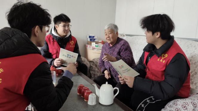 1月10日,服务队在淄博市周村区灯塔幸福苑,以“情暖敬老院,青春传爱心”为主题,为老人们带来了一场充满温情的文艺盛宴。成员们倾情演唱《强国一代有我在》《万疆》等经典歌曲,深情朗诵自创敬老诗歌《新春送暖,情系桑榆》,悠扬的歌声与真挚的朗诵声让老人们沉浸在温馨的氛围中。活动现场,志愿者们挥毫泼墨,书写春联与“福”字,将新春的美好祝福送到每位老人手中。此外,志愿者们围坐于老人身旁,耐心倾听他们的人生故事与过往经历,同时围绕日常生活照顾、精神文化活动、智能设备使用等方面开展调研,详细记录老人们的需求与建议,搭建起温暖的情感纽带。