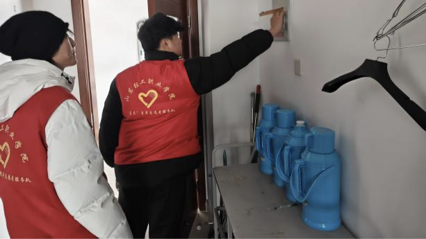 检查现场,师生检查组秉持“不漏一间、不查一处、不留一丝隐患”的严谨态度,逐间开展拉网式排查。教师牵头统筹排查重点,学生骨干协助检查电源插座、电器使用,共同排查安全隐患。针对离校宿舍,师生协同完成统一断电、关闭水电总阀等操作,从源头杜绝火灾、漏水等安全事故;同时合力清理宿舍阳台、卫生间等卫生死角,确保宿舍保持干净整洁,为同学们返校生活奠定良好基础。